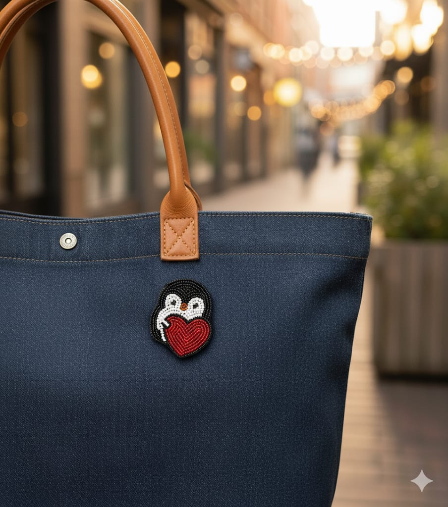 Did you know penguins search far and wide for the perfect pebble to present to their beloved as a token of affection? Pebble, our endearing penguin has found his perfect treasure: a vibrant red heart, just for you!