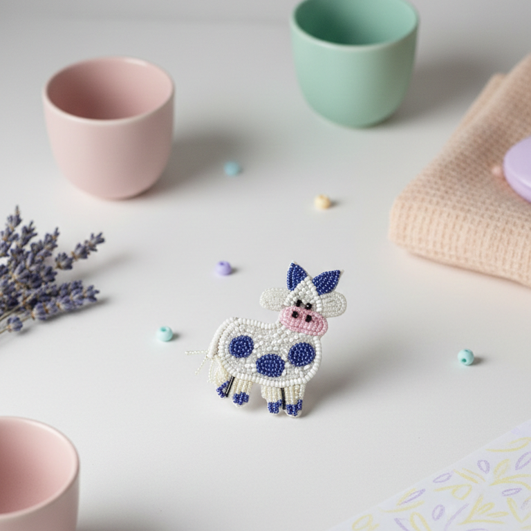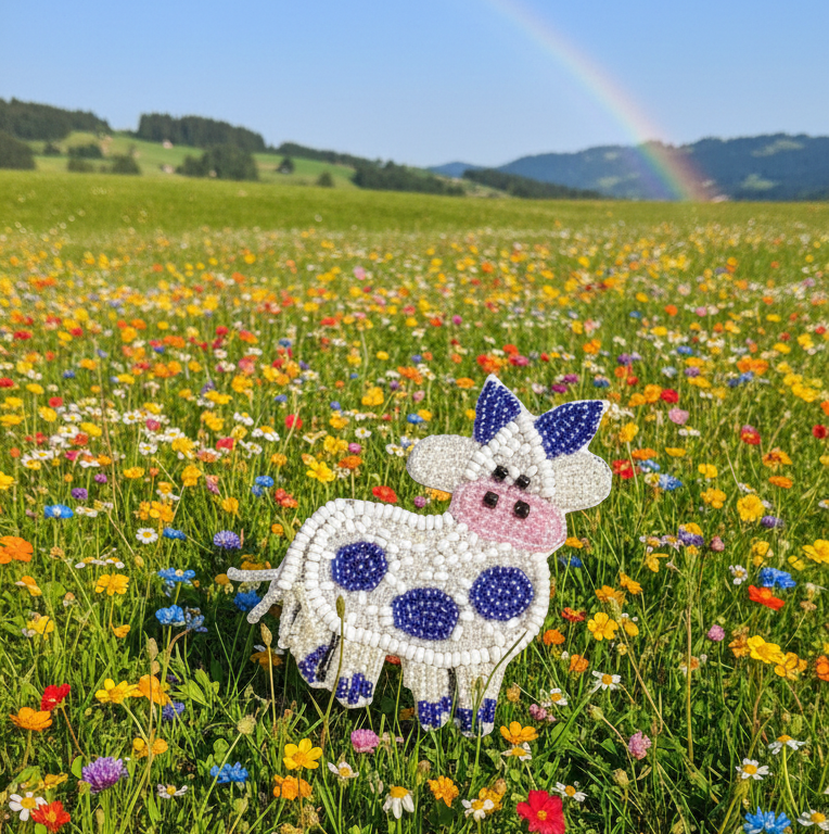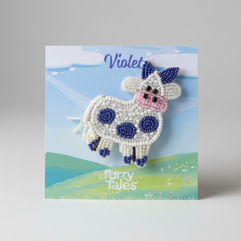 Straight from the dreamy Swiss Alps, this little Jersey diva is serving mountain glam with a side of sass! Completely handmade with love, Violet is delicately beaded in creamy whites and bold violets, with the cutest pink snout and tiny hooves that are ready to strut, not stroll.